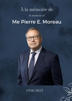 C’est avec une profonde tristesse que nous avons appris le décès de notre collègue et ami Me Pierre E. Moreau, survenu le 29 juin 2025, à l’âge de 68 ans.
